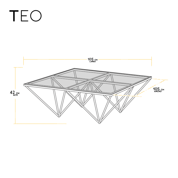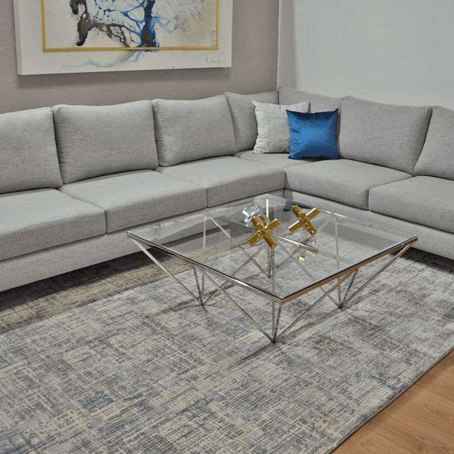 - MESA DE CENTRO TEO CRISTAL CLARO-PLATA