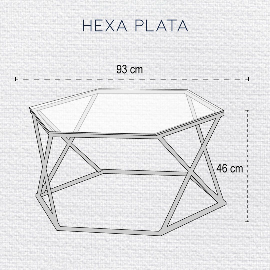 - MESA DE CENTRA HEXA CRISTAL CLARO - PLATA